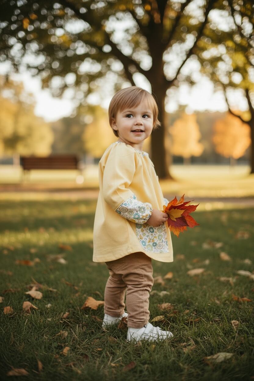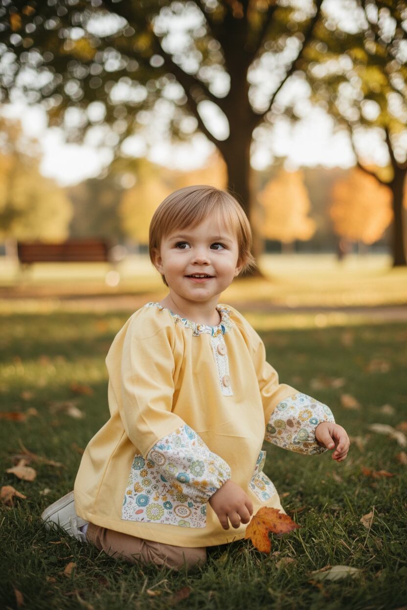 このスモックは、日常のさまざまなシーンで活躍する頼もしいアイテムです!遊びや食事の際に安心して着用できるため、育児を支える心強いパートナーとなります。カジュアルながらも個性的なデザインは、どんなスタイルにもマッチし、日々のコーディネートをグッと引き立てること間違いなしです。