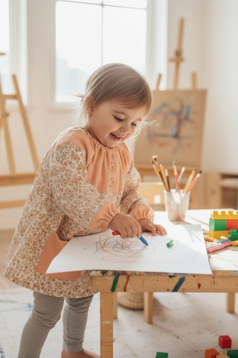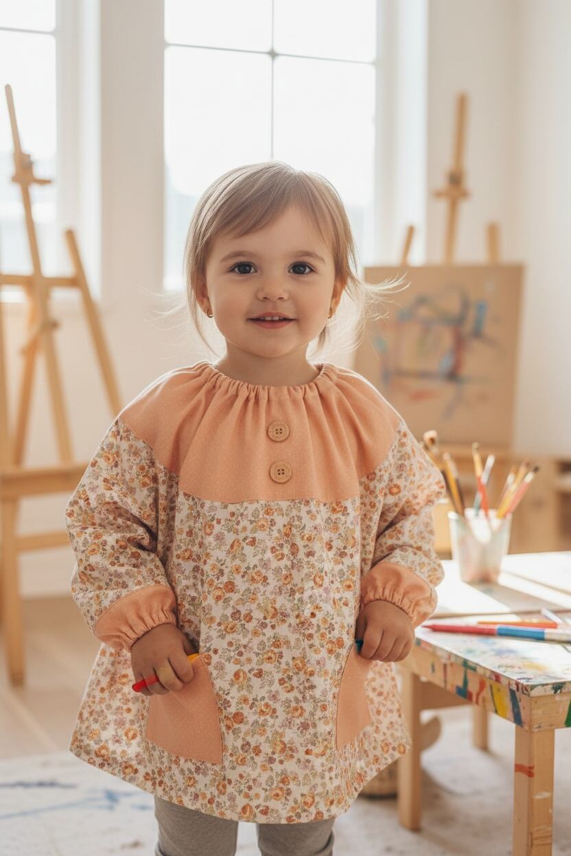 このスモック…丸ヨークピーチで、お子様のファッションに可愛らしさと快適さをプラスしてみませんか?ぜひ、お子様の遊びをもっと楽しくするアイテムとしてお選びください!