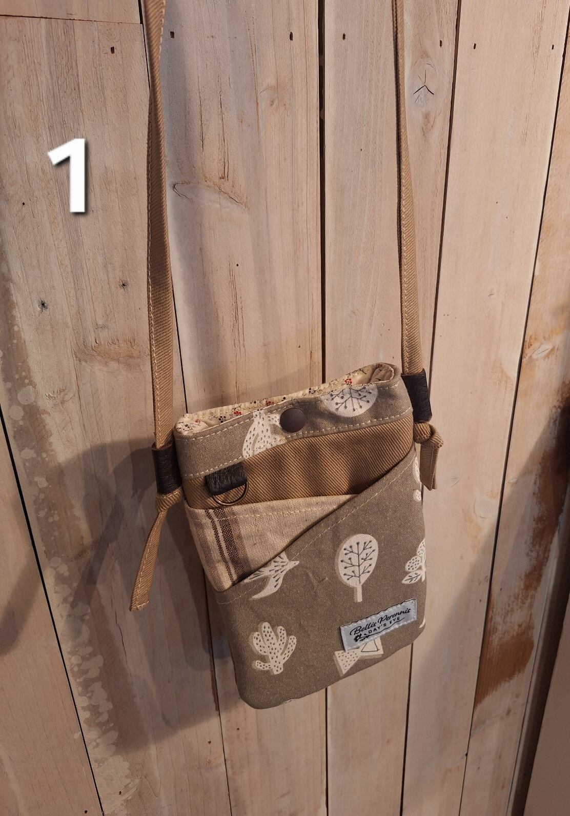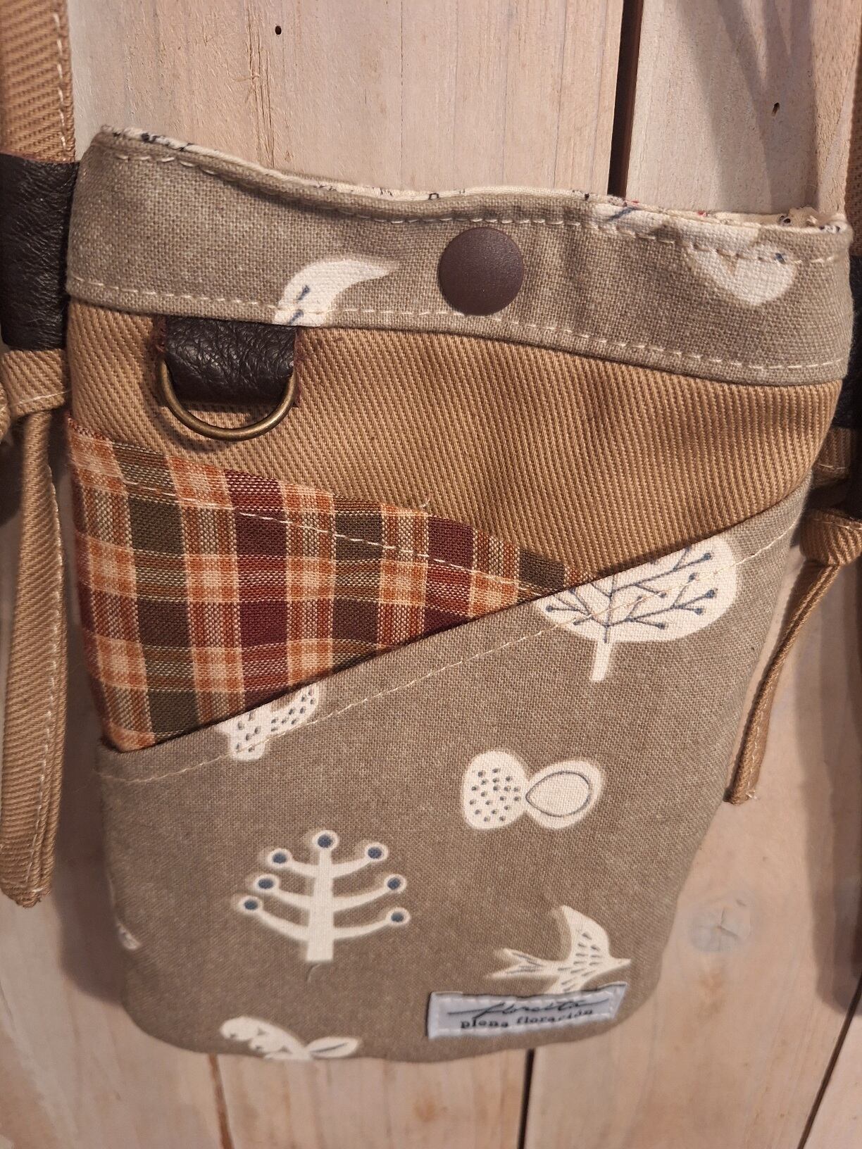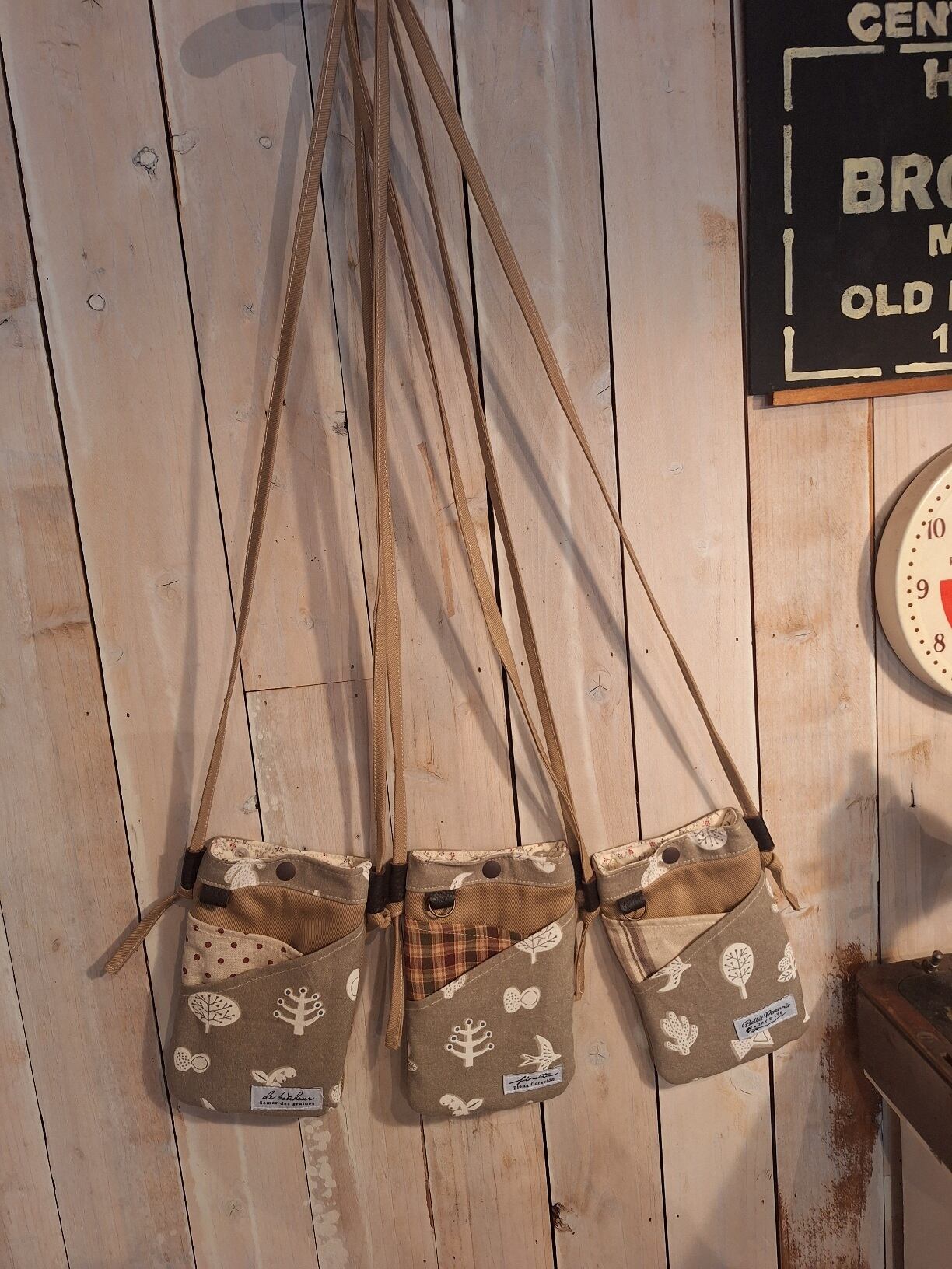 スマホショルダー…北欧柄は、2つのポケットが付いたコンパクトで実用的なデザインが特徴です!コットンとコットンリネンを使用し、裏にはキルト芯を貼っているため、大切なスマホを優しく守ります。ポケットの色合いが違う3種類のスマホショルダーです。