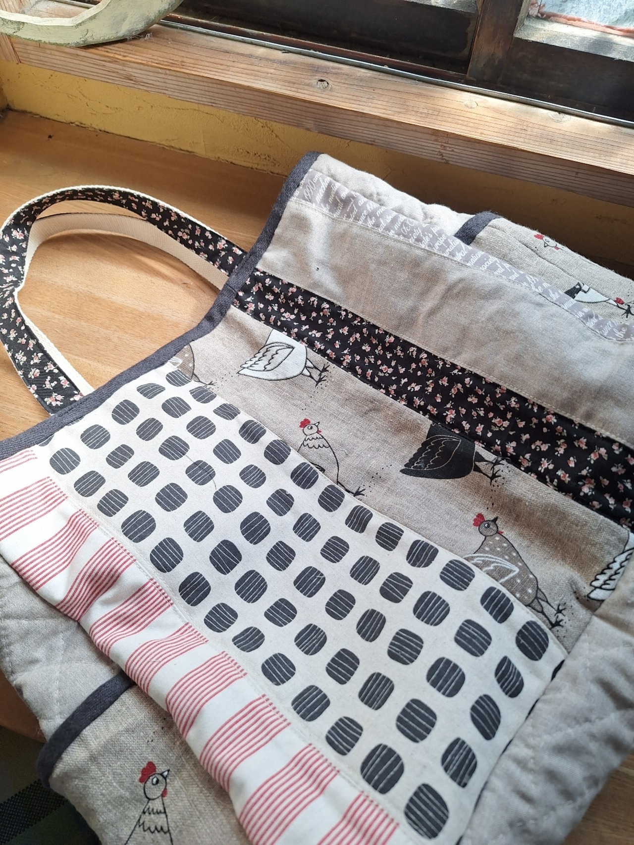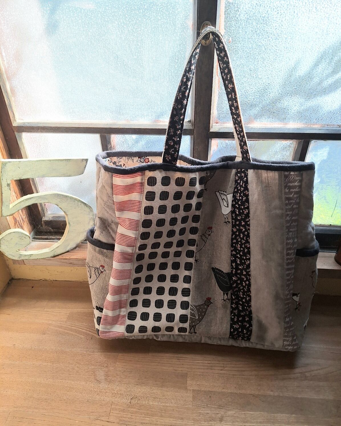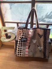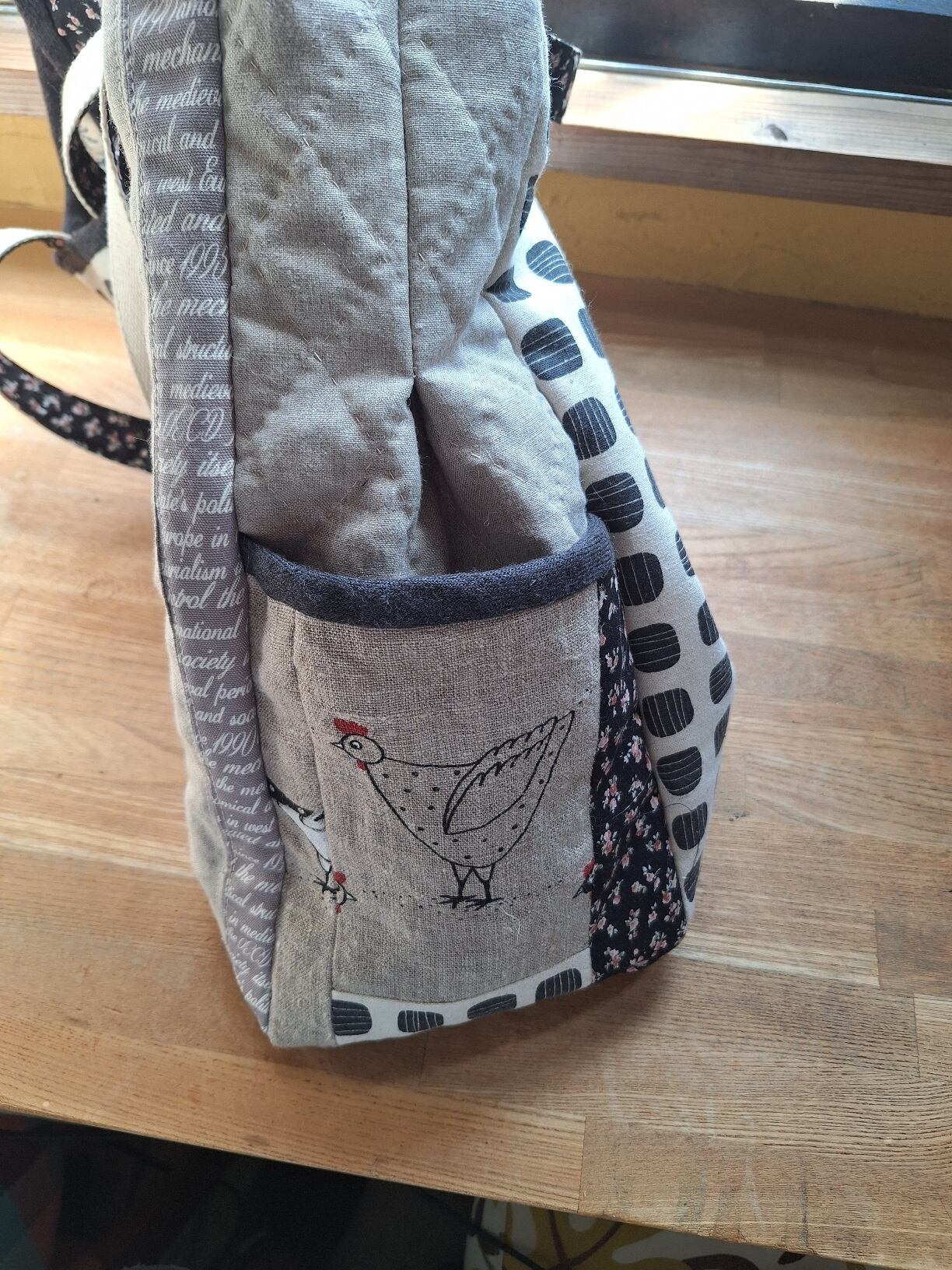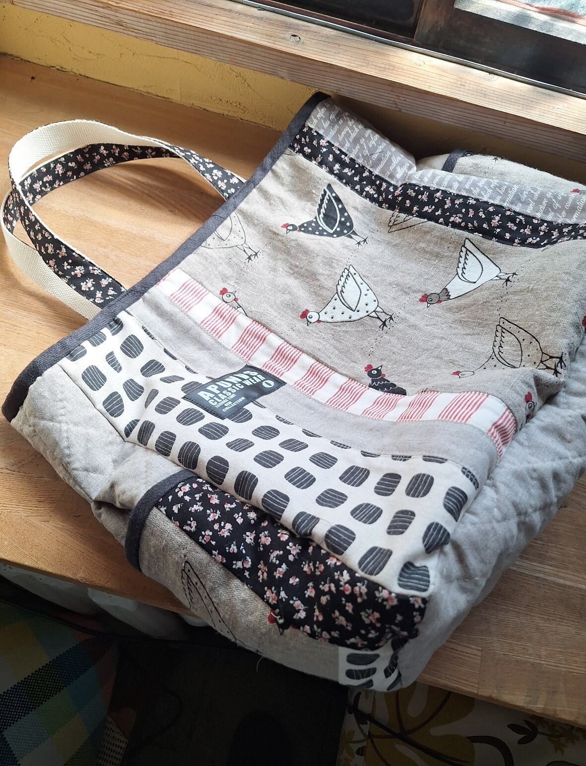 ビットトート…にわとりは、ザックリしたリネン生地に可愛いにわとりがプリントされた、ビッグトートバッグが魅力です!大容量のマチ付きデザインで、サイドにはパッチ仕立てのポケットが施されています。中にはキルト芯が入っており、ふんわりとした仕立てがポイントです。