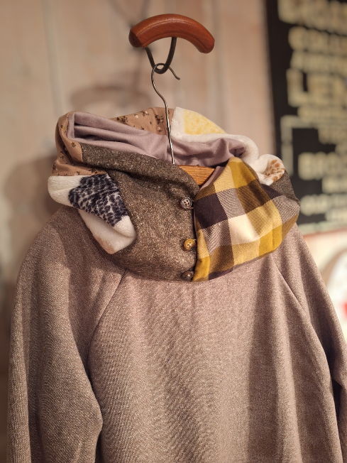 この変わりフードのトレーナー…チャコールで、自分だけのスタイルを見つけてみませんか?ぜひ、このアイテムを取り入れて、あなたのワードローブに新たな魅力を加えてください!