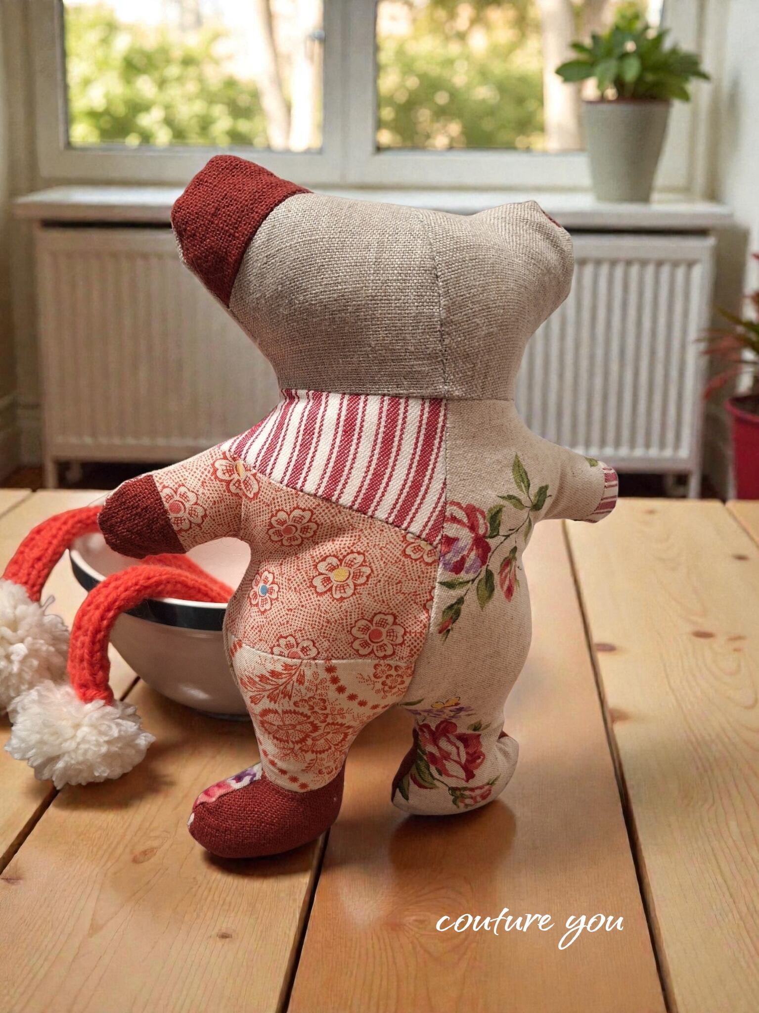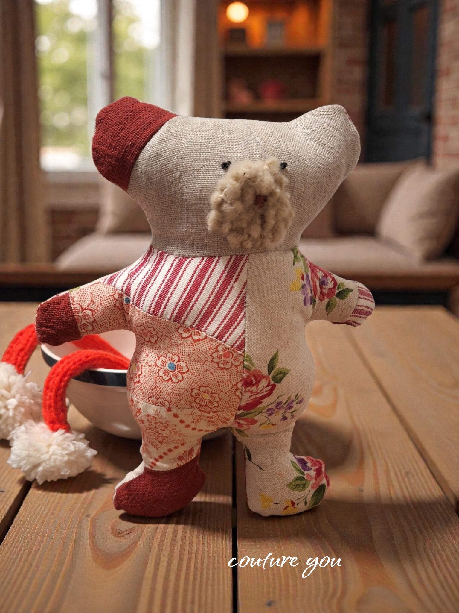 パッチBear…赤系は、6種類の布を繋ぎ合わせて作られたオリジナルの可愛らしいクマのぬいぐるみです!多彩な色合いと質感が特徴で、あなたのインテリアやお子様のお友達にぴったりの存在感を放っています。このBearを一つ手に取ることで、温かでほっこりした気持ちを感じられることでしょう。