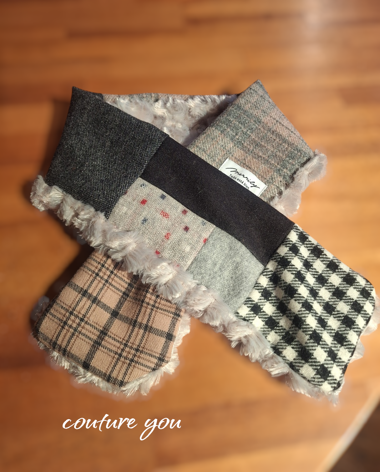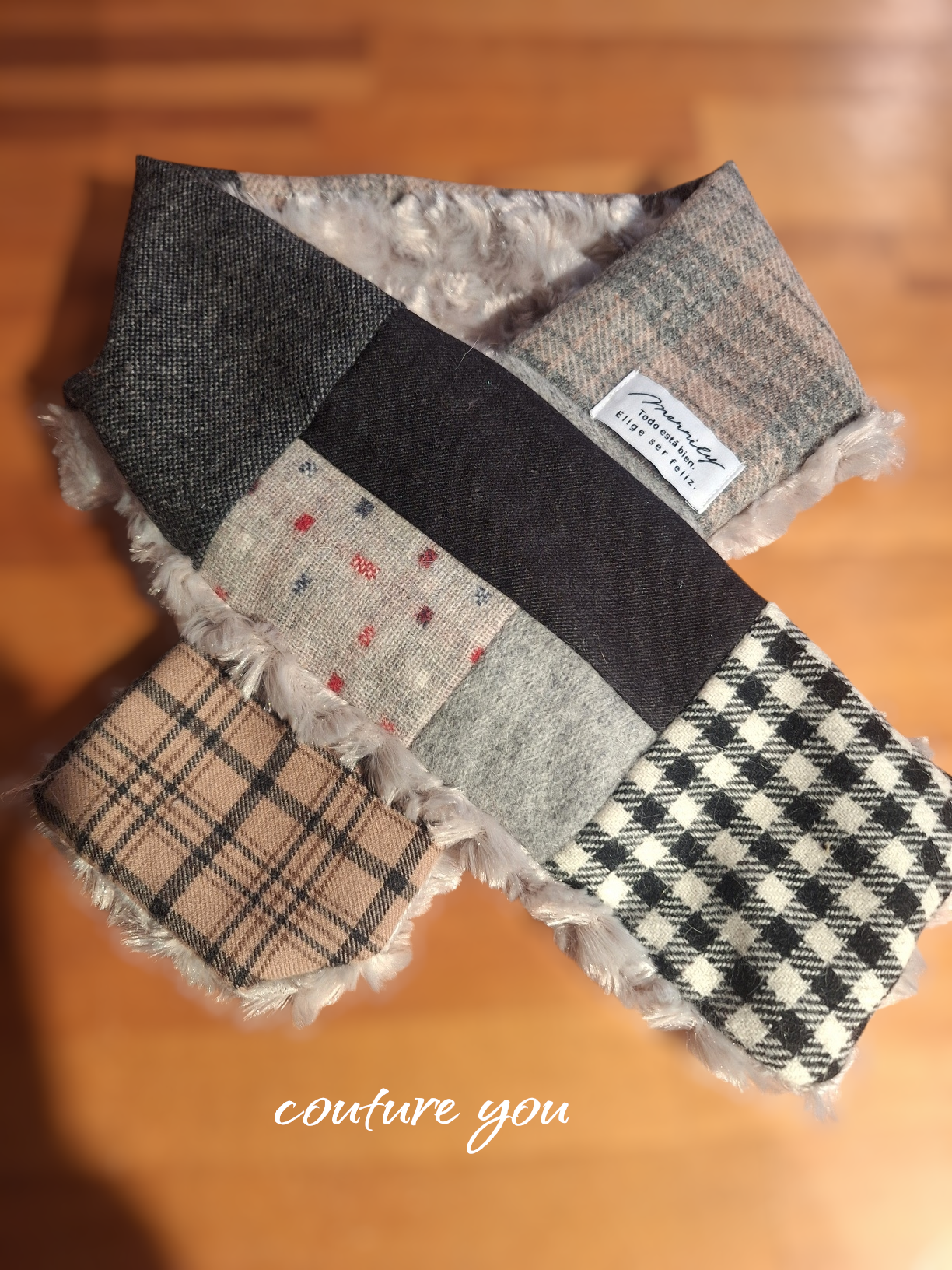 あったかパッチのショートマフラー…グレーは、7種類のウール生地を巧みに繋ぎ合わせて作られた魅力的なアイテムです!裏側にはしっとりとしたファー生地を採用しており、肌触りが非常に良く、ひんやりとした冬の日でも心地よい温かさを感じることができます。ショート丈で軽やかなサイズ感が特徴で、リラックスタイムやお出かけの際にも気軽に身に着けられます。