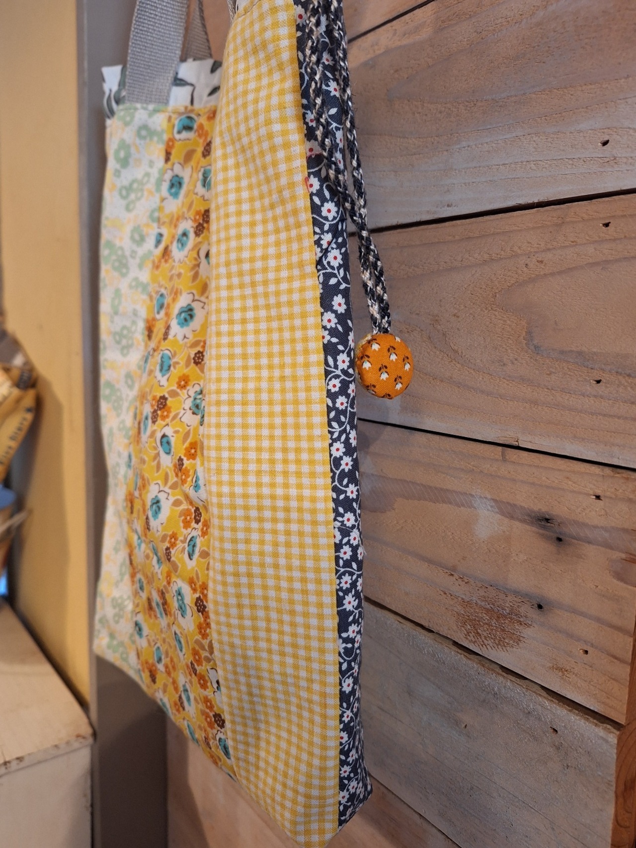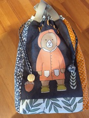 巾着バック…オレンジは、可愛い動物モチーフのパネル柄を生かして作られた魅力的なアイテムです!裏側にはバッチワーク仕立てが施されており、お洒落なデザインが特徴的です。内布にはしっかりした厚みのあるコットン生地を使用しており、安心してお使いいただけます。サブバッグや上履き入れとして、様々なシーンで大活躍することが期待できます!