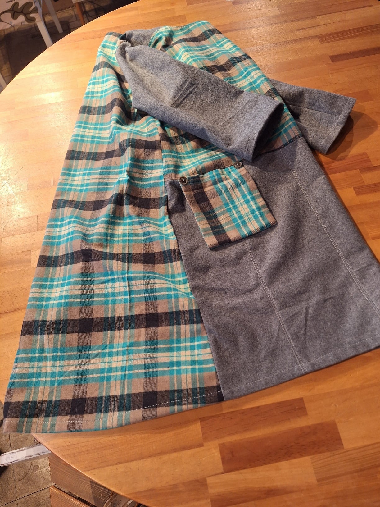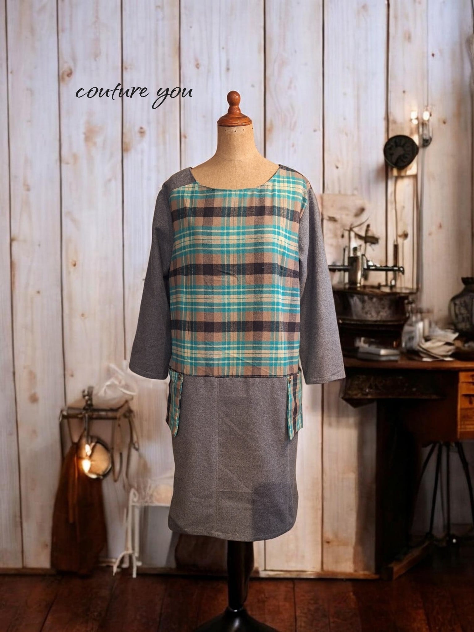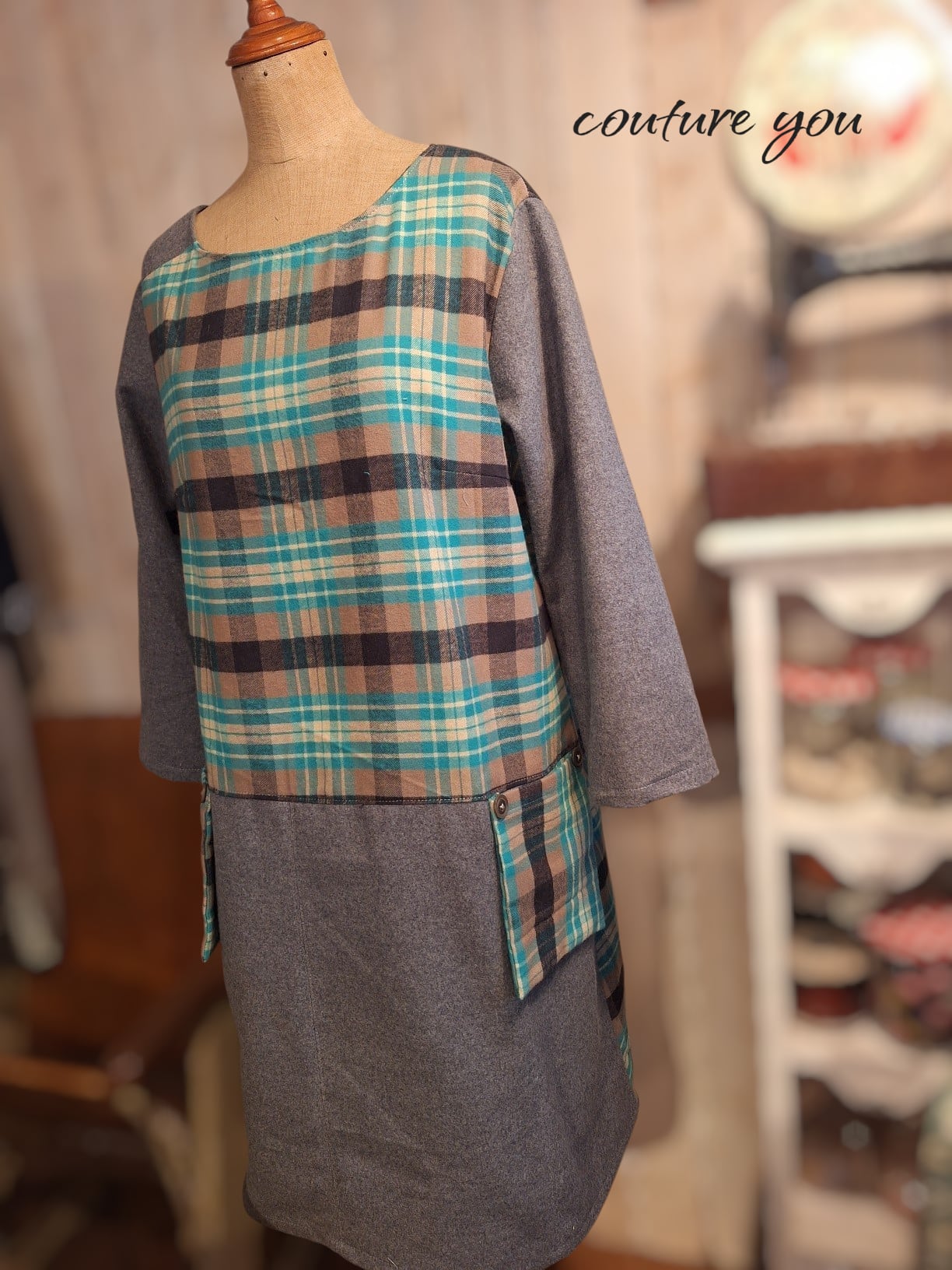 温かみのある素材感とユニークなポケットデザインが、あなたのコーディネートに絶妙なアクセントを加えます。カジュアルなスタイルからちょっとしたお出かけまで、様々なシーンにマッチする一着です。このチュニックを着ることで、日常のスタイルがさらに楽しくなりますよ!